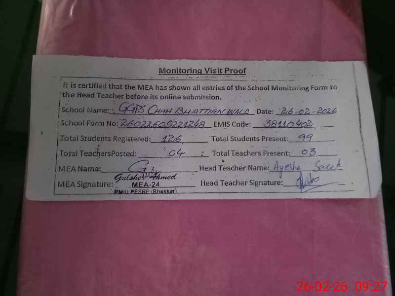 | EMIS Code: 38110402 | Name of School: GGPS CHAH BHATTIAN WALA | |||