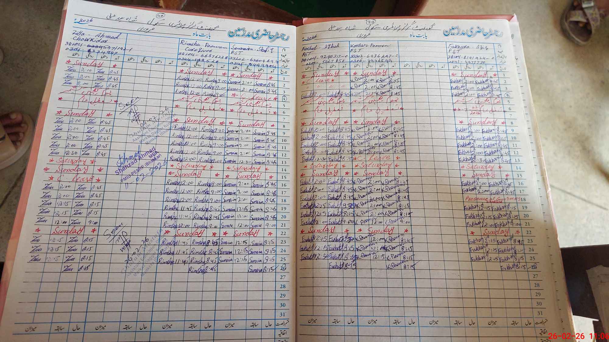 | CNIC | Full Name | Designation | R/C | Absence During Last Calender Month |