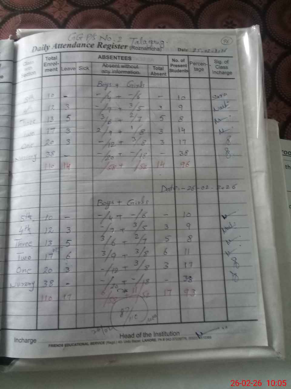 | Attendance Register | Head Teacher | MEA with School | Visit Proof |