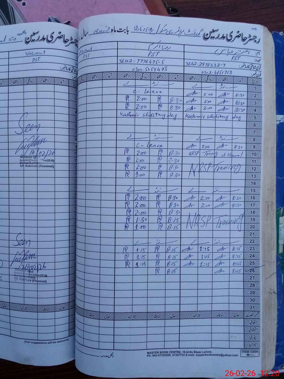 | Remarks (Use Separate Page if Required): 01 STI joined in the school from 24 Feb 2026. | |||||