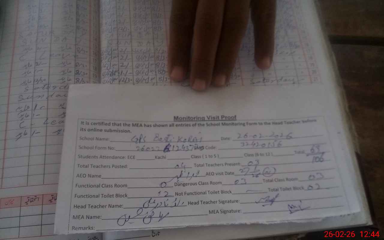 | EMIS Code: 32420156 | Name of School: GPS BASTI KORAI | |||
