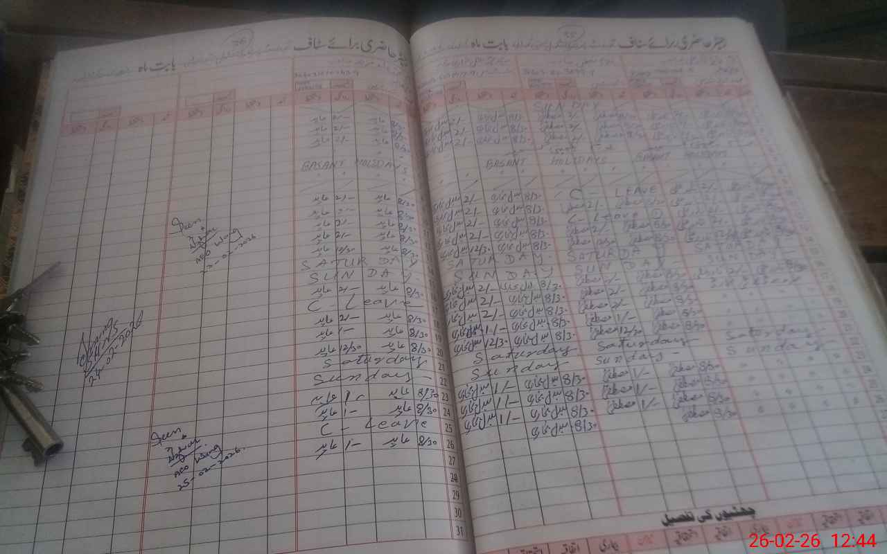 | CNIC | Full Name | Designation | R/C | Absence During Last Calender Month |