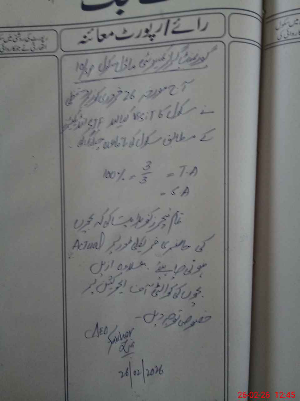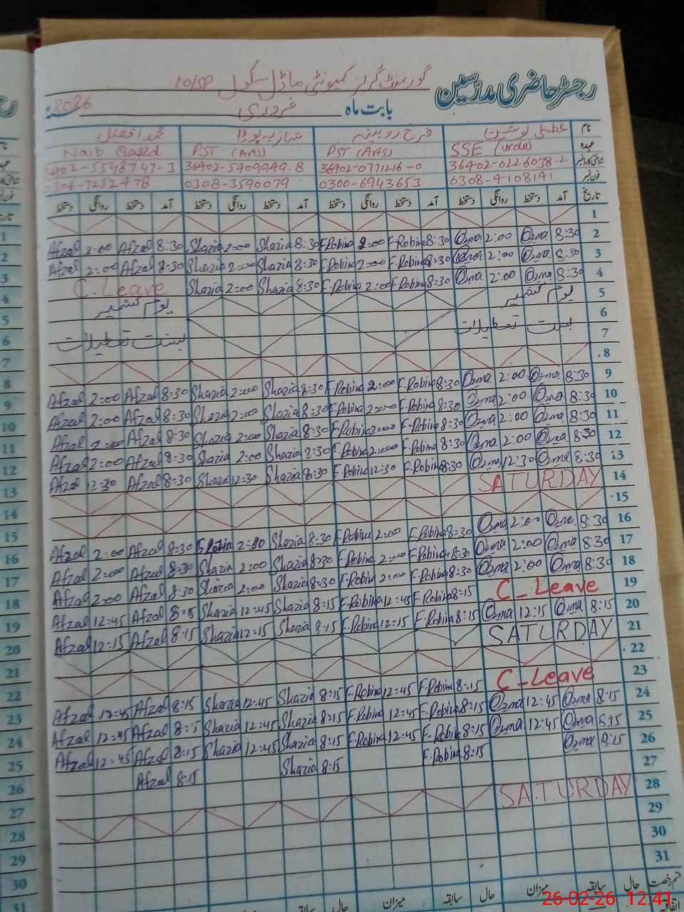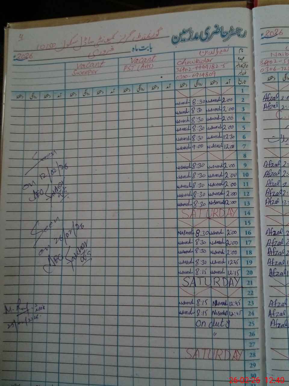 | Name: UZ**** NO**** Designation: (School Headmaster's/Headmistress's) SSE ( Urdu ) Phone/Cell Number: 03**** |