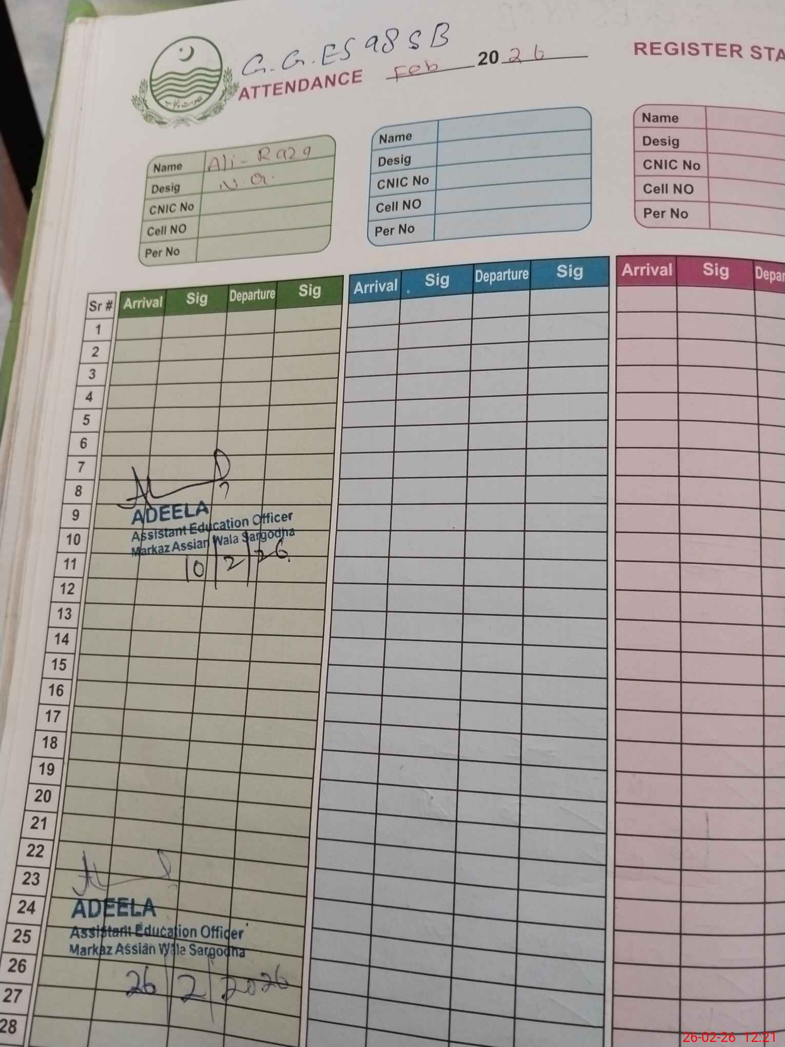 | Name: AB**** NA**** Designation: (School Headmaster's/Headmistress's) S.S.T.(Arts) Phone/Cell Number: 03**** |