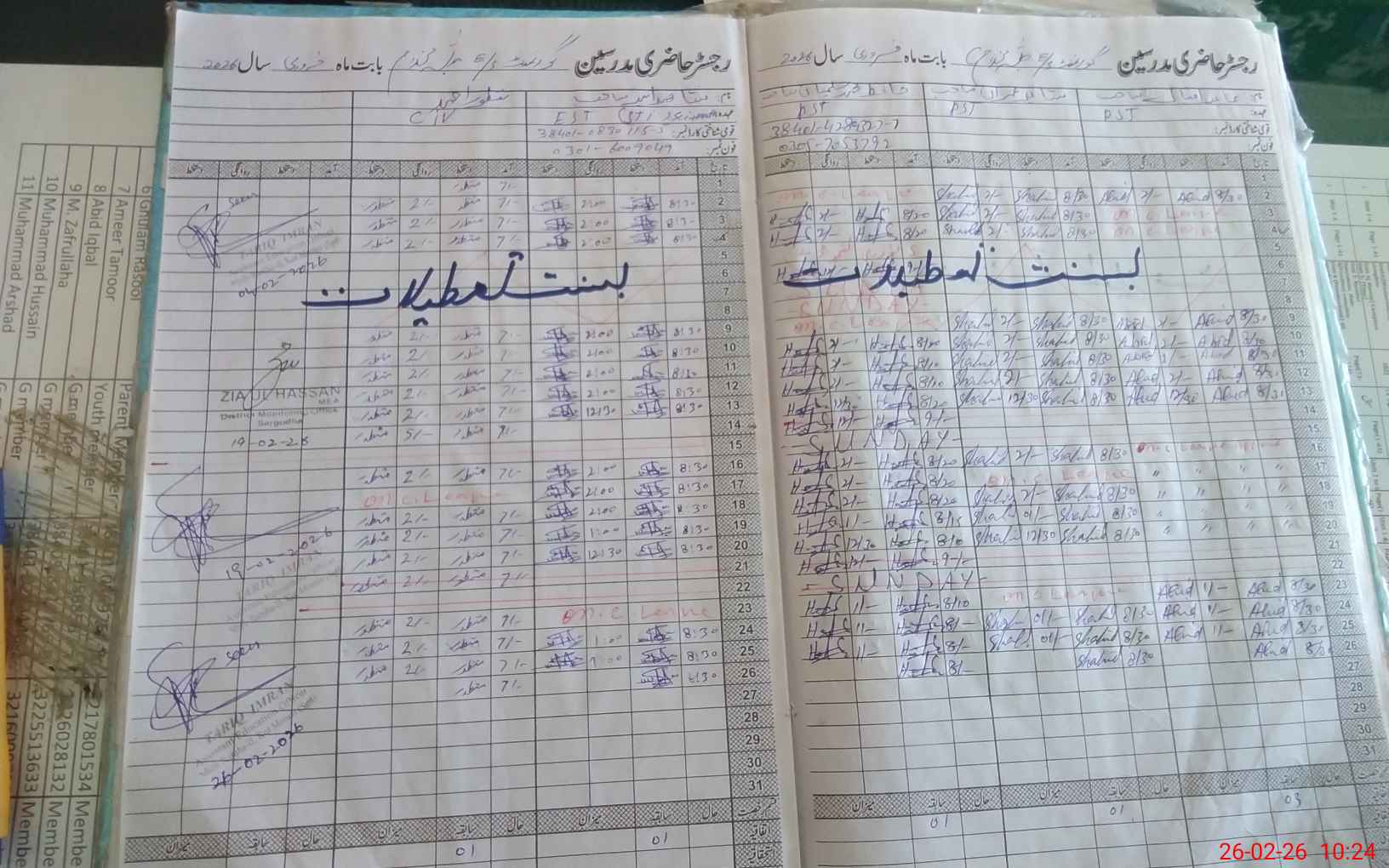 | CNIC | Full Name | Designation | R/C | Absence During Last Calender Month |