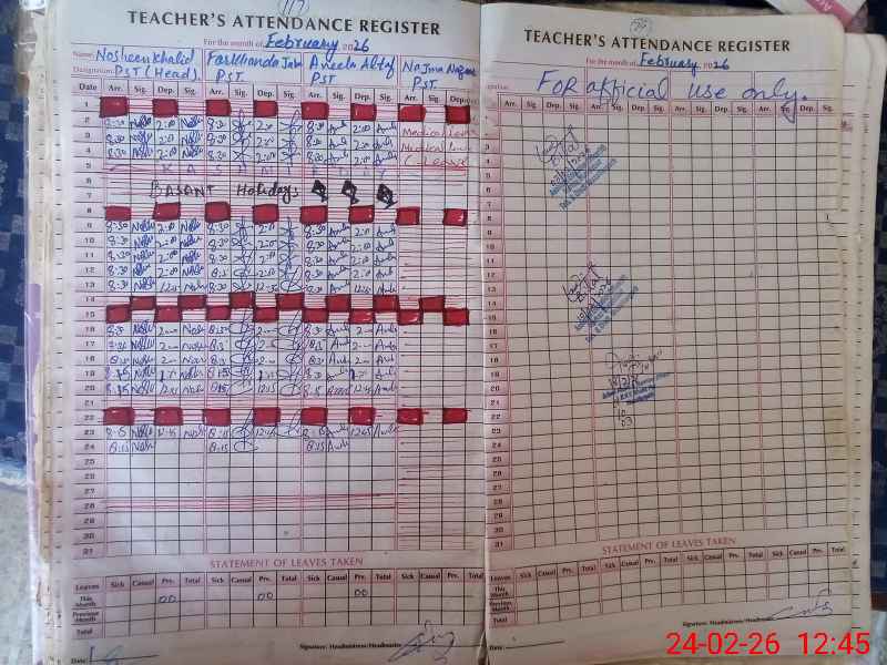| Name: No**** Kh**** Designation: (School Headmaster's/Headmistress's) PST Phone/Cell Number: 03**** |