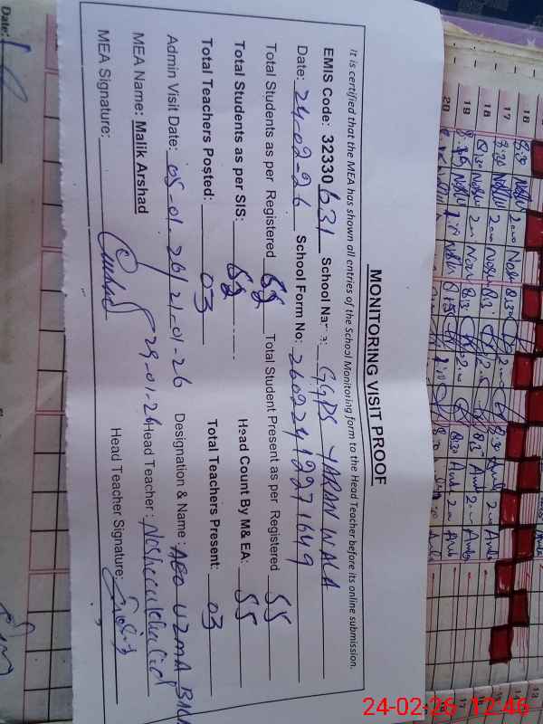 | Attendance Register | Head Teacher | MEA with School | Visit Proof |