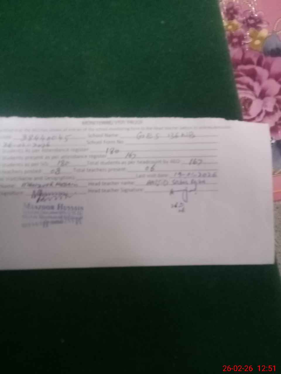 | Certified that this School was Inspected by the Undersigned MEA/DMO Today and the Information Stated Above is as Per Record. | |||||