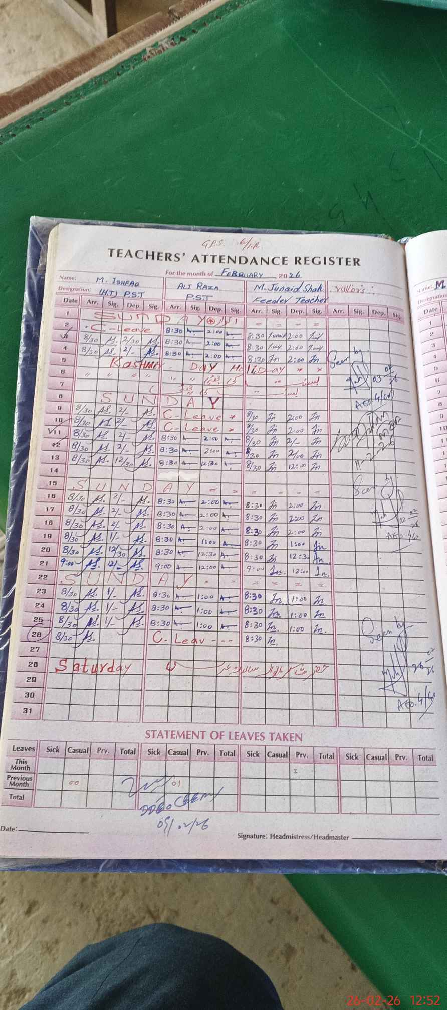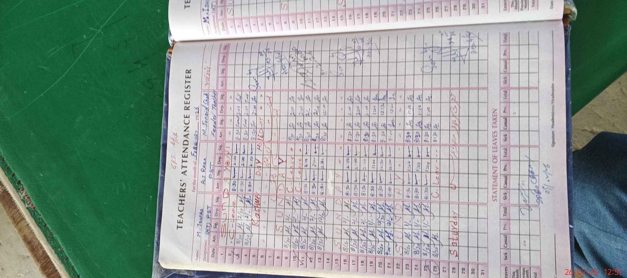 | 35**** | Al**** Ra**** | PST Science/Maths | Regular | 0 | 0 | 0 | 0 | 0 | 0 | 0 | 0 | 0 | Casual |