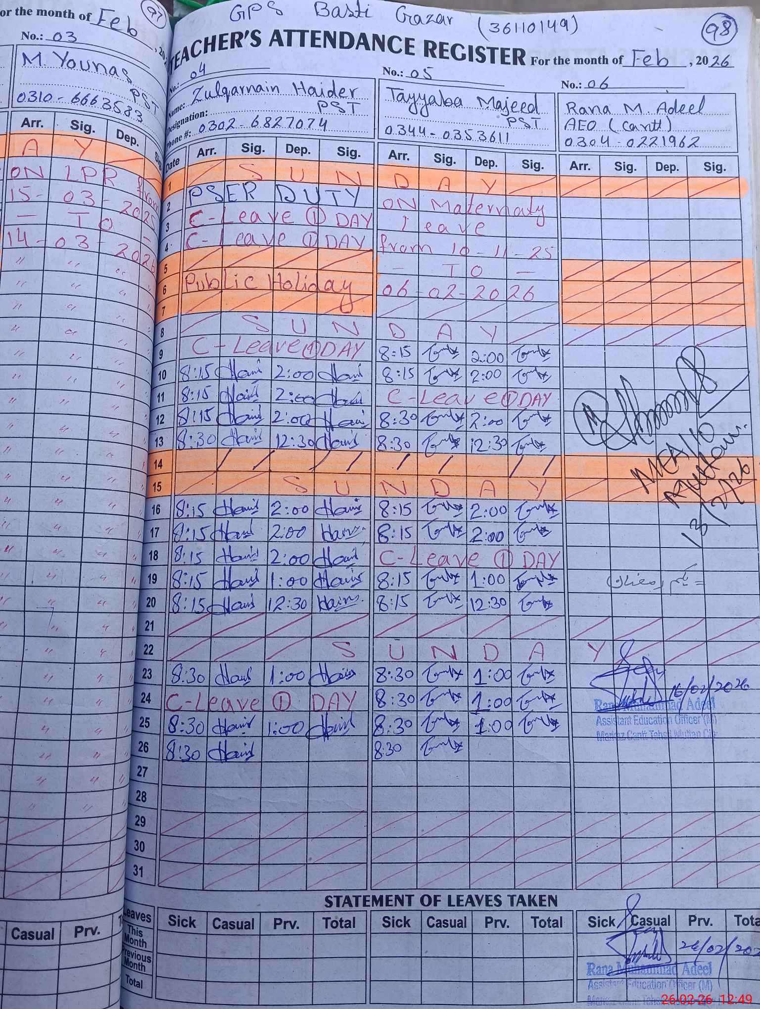 | EMIS Code: 36110149 | Name of School: GPS BASTI GHAZAR P/O MUZAFAARABAD | |||