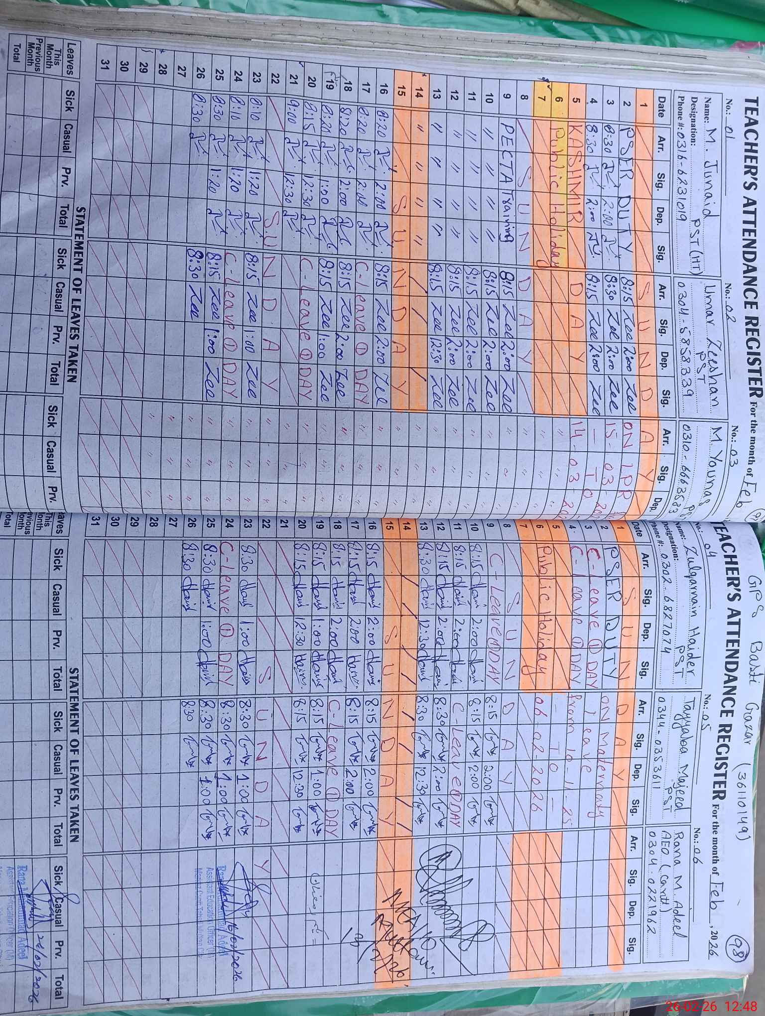 | Name: Um**** Ze**** Designation: (School Headmaster's/Headmistress's) HEADMASTER Phone/Cell Number: 03**** |