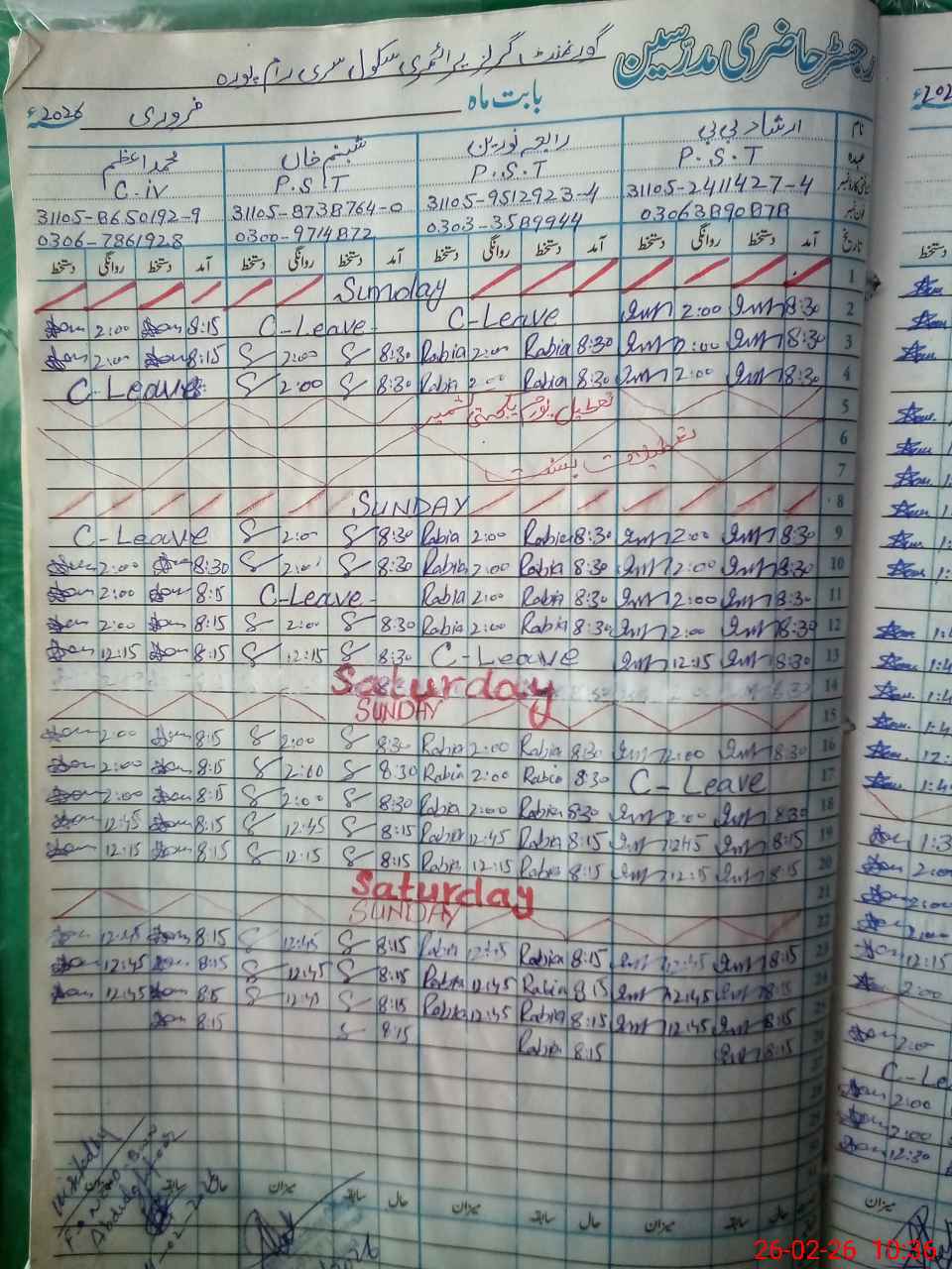 | CNIC | Full Name | Designation | R/C | Absence During Last Calender Month |