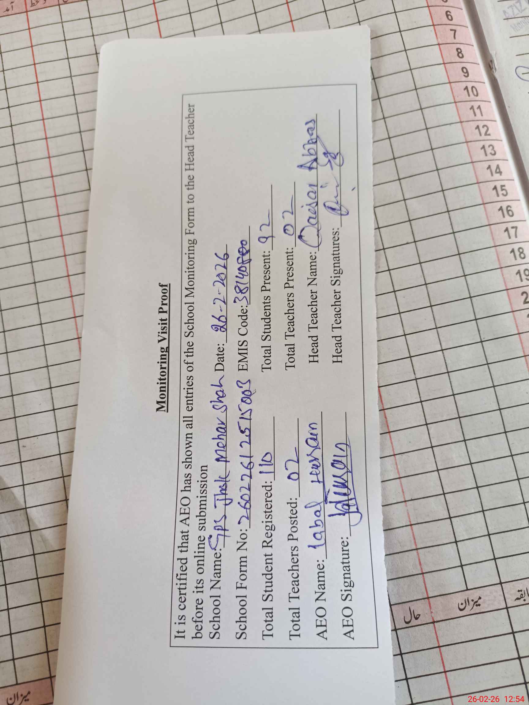 | EMIS Code: 38140880 | Name of School: GPS JHOKE MEHR SHAH | |||
