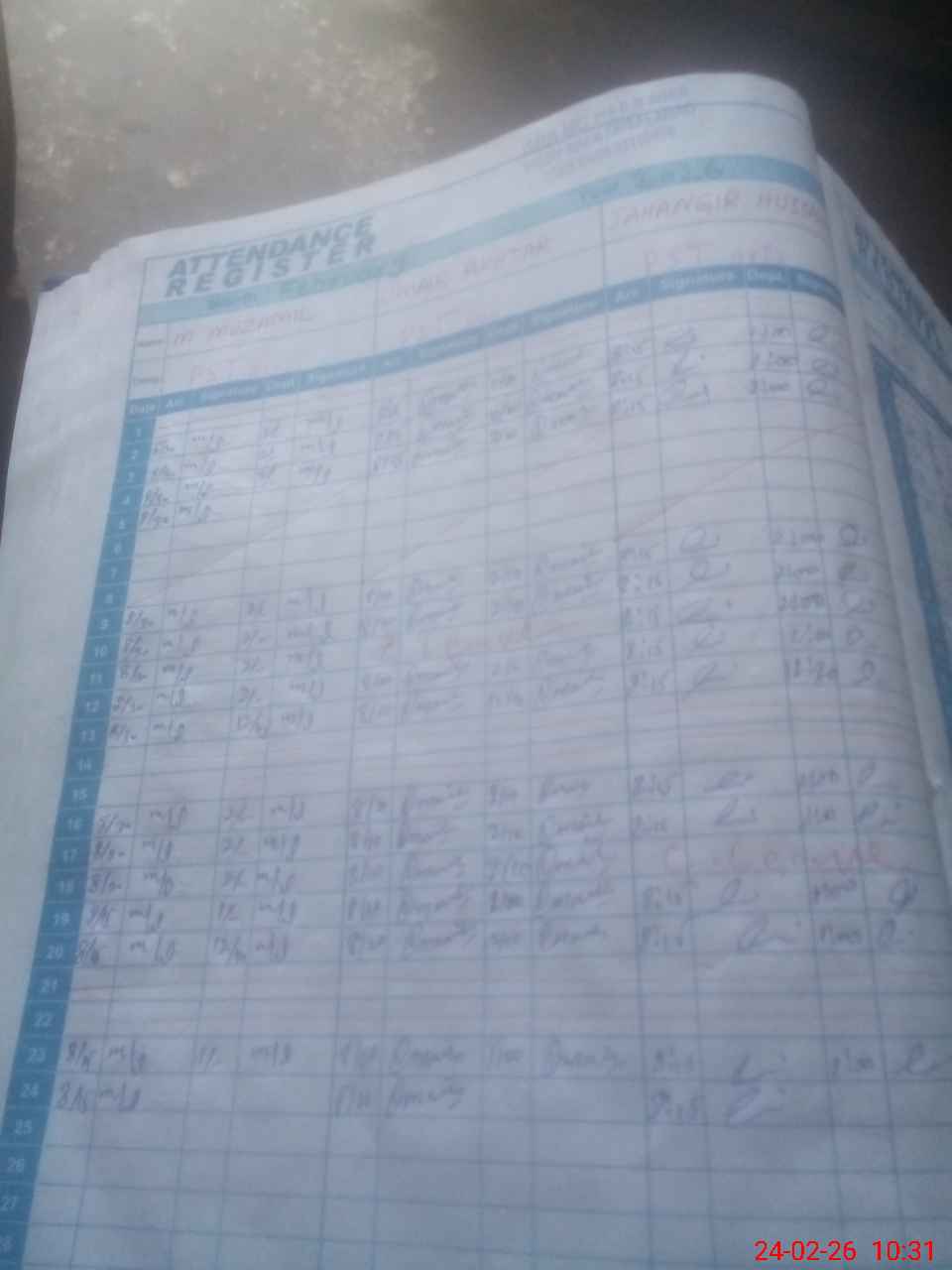 | CNIC | Full Name | Designation | R/C | Absence During Last Calender Month |