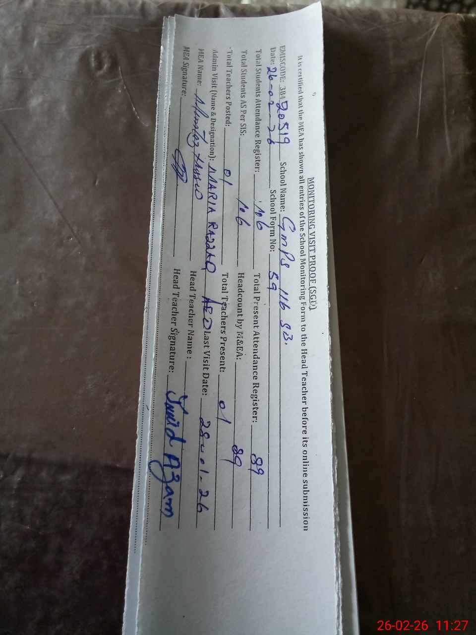 | Certified that this School was Inspected by the Undersigned MEA/DMO Today and the Information Stated Above is as Per Record. | |||||