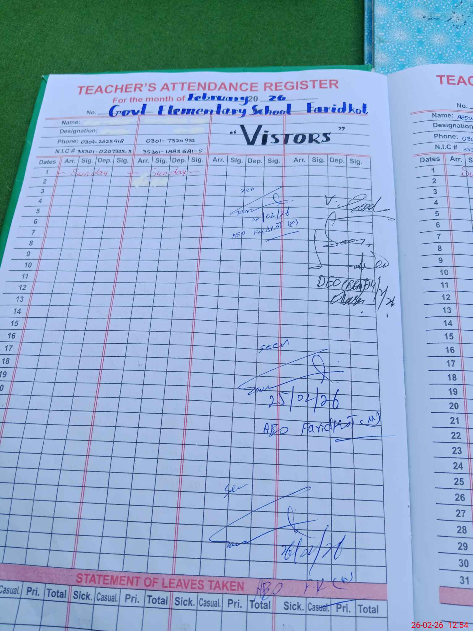 | Name: RA**** AB**** QA**** Designation: (School Headmaster's/Headmistress's) HEADMASTER Phone/Cell Number: 03**** |