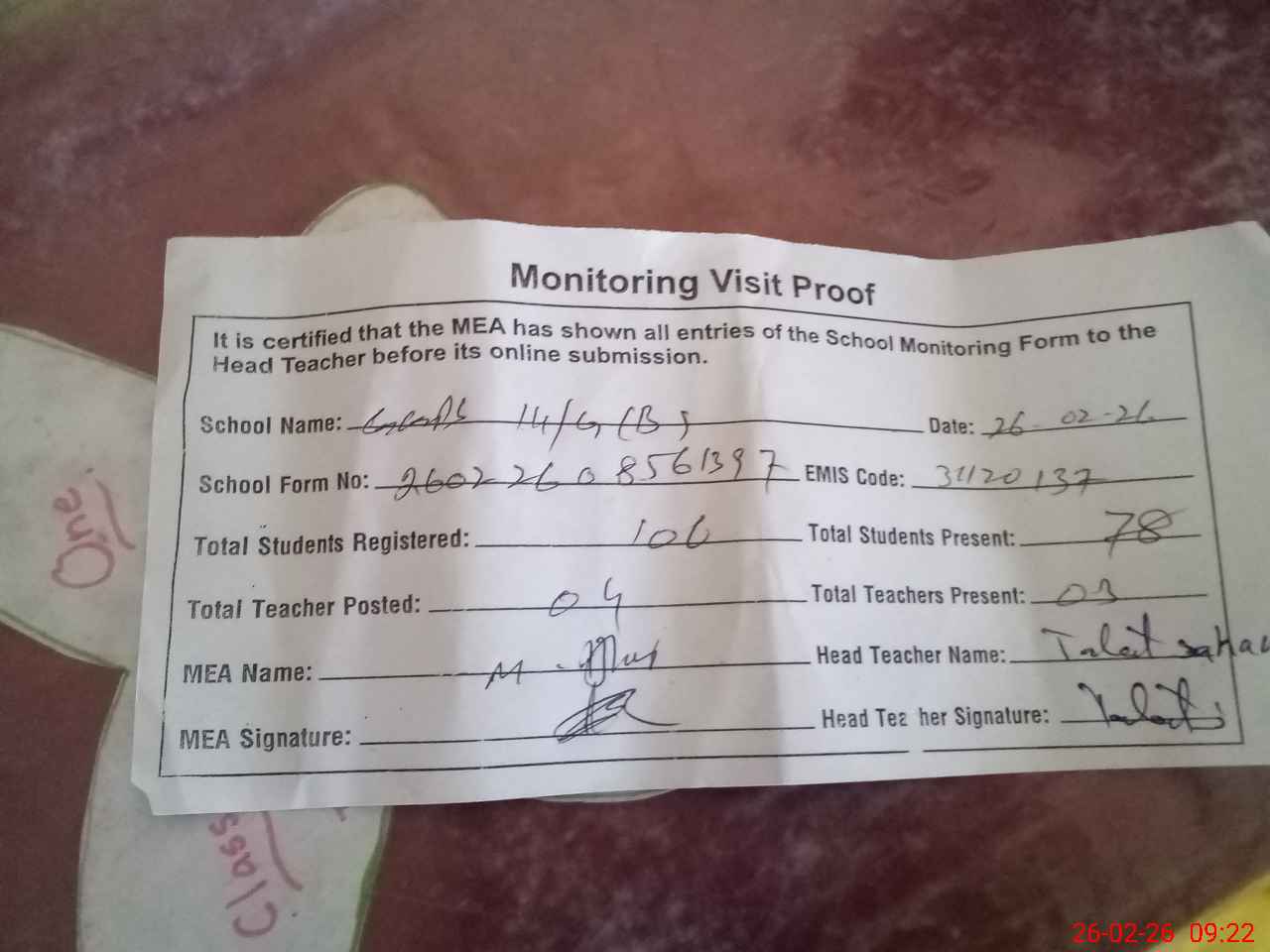 | EMIS Code: 31120137 | Name of School: GGPS CHAK NO 14/GB | |||