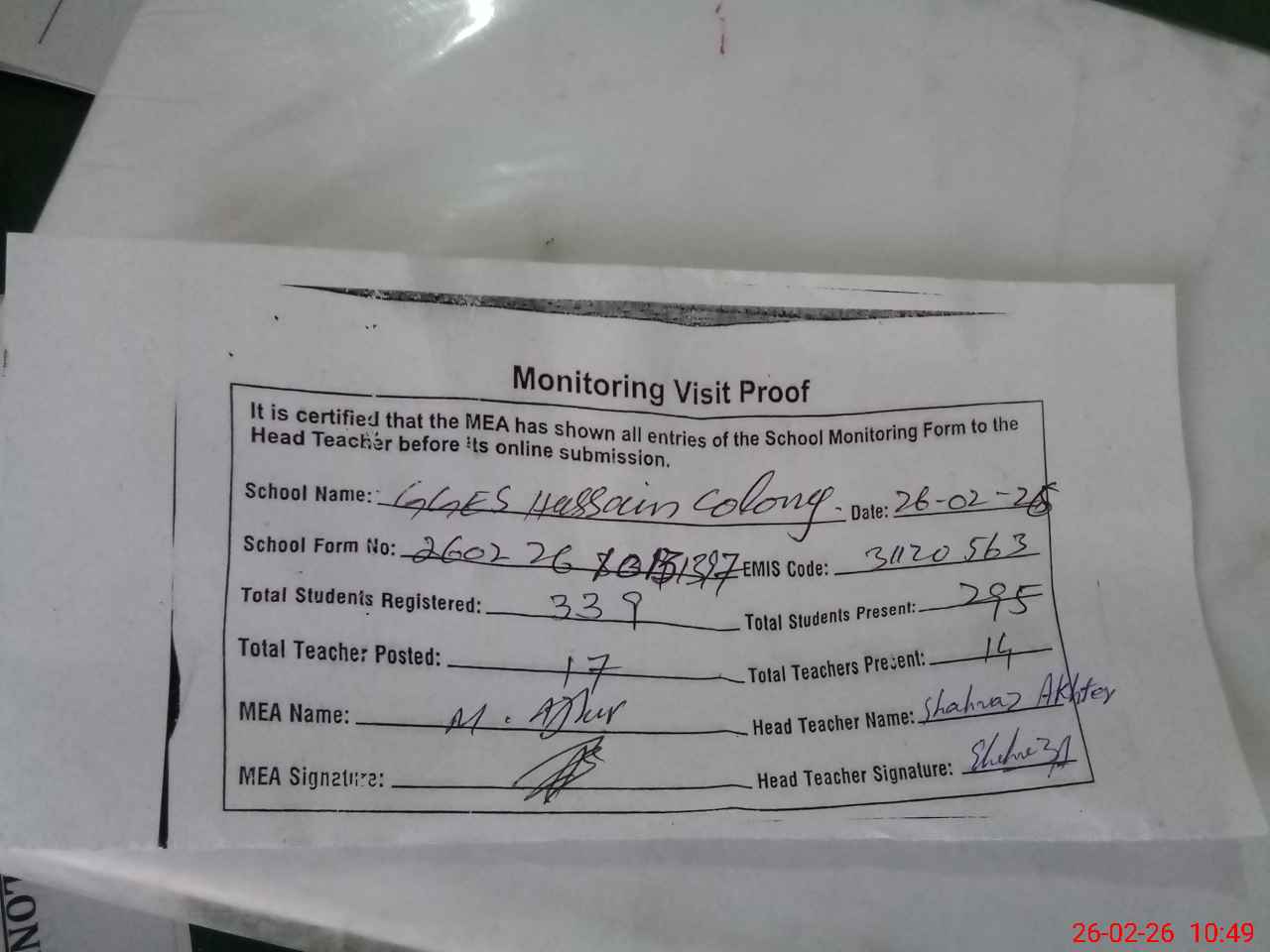 | EMIS Code: 31120563 | Name of School: GGES HUSSAIN COLONY | |||