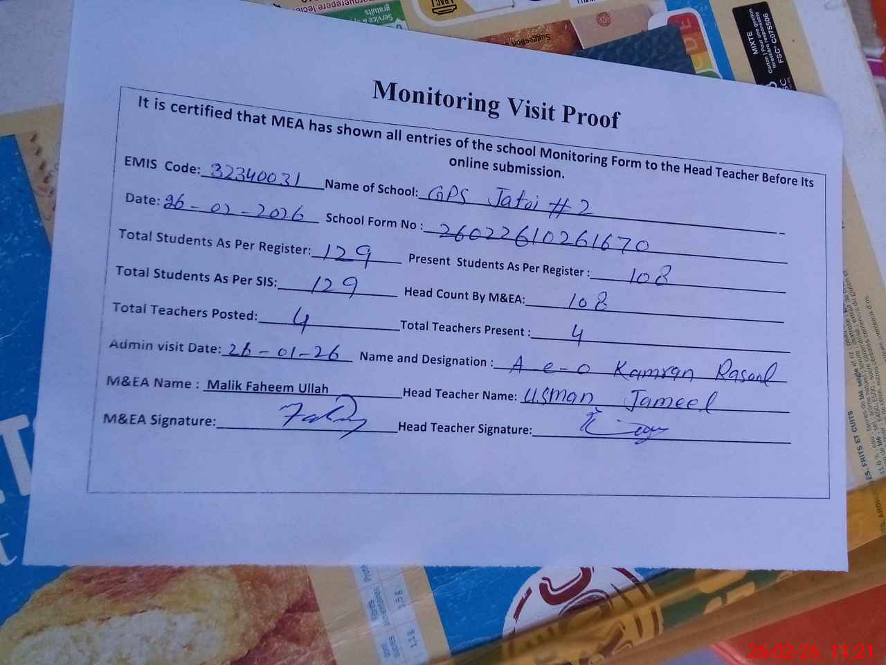 | EMIS Code: 32340031 | Name of School: GPS NO. 2 JATOI | |||