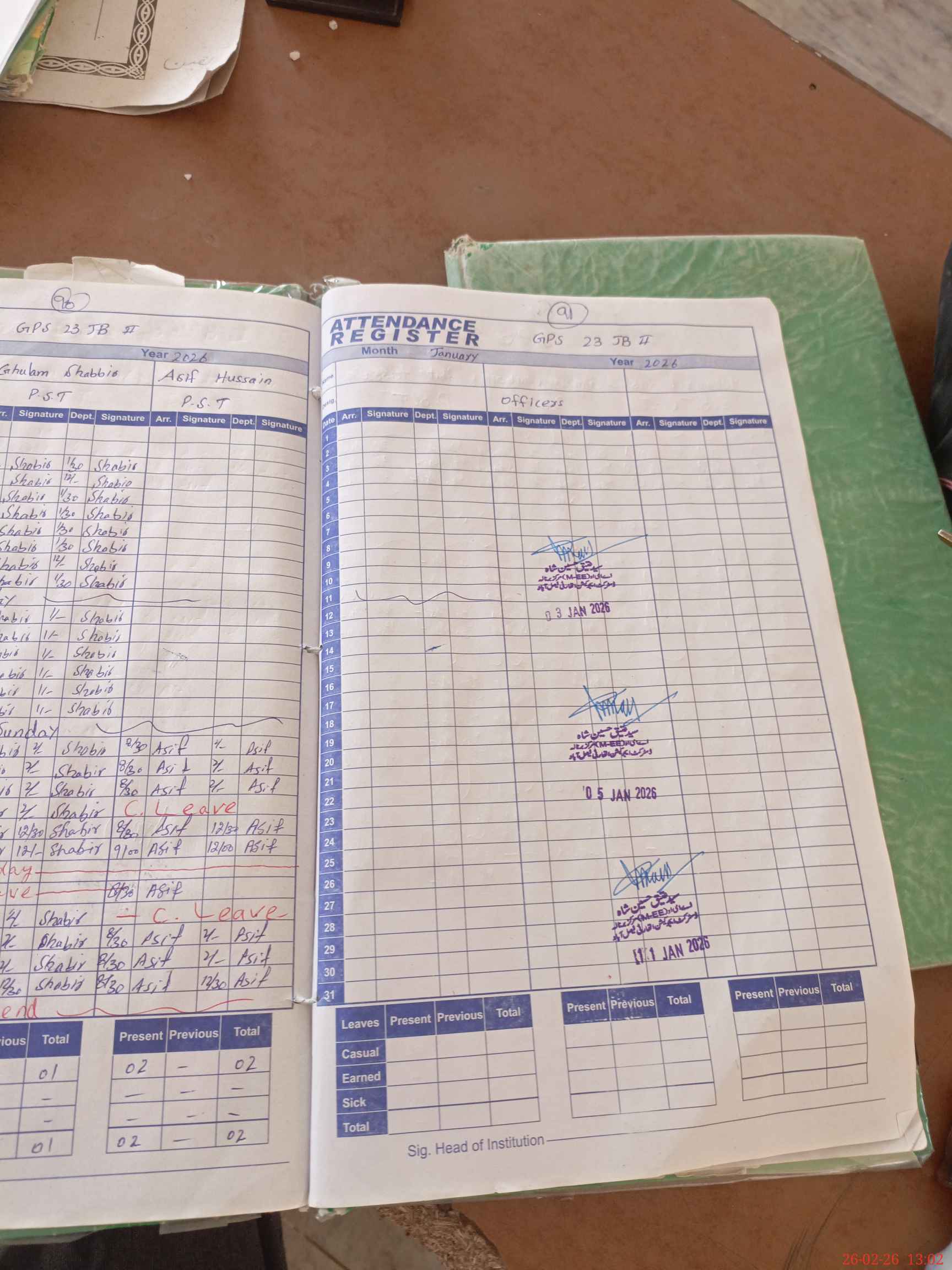 | CNIC | Full Name | Designation | R/C | Absence During Last Calender Month |