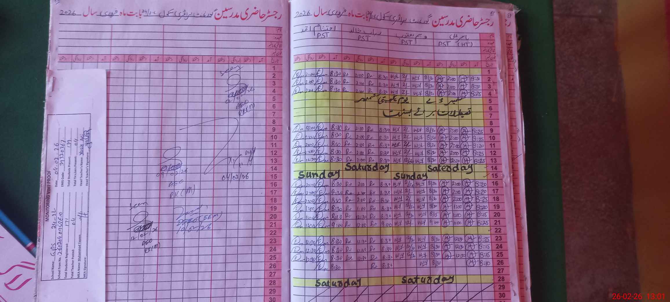 | Name: Ya**** Al**** Designation: (School Headmaster's/Headmistress's) PST Phone/Cell Number: 03**** |