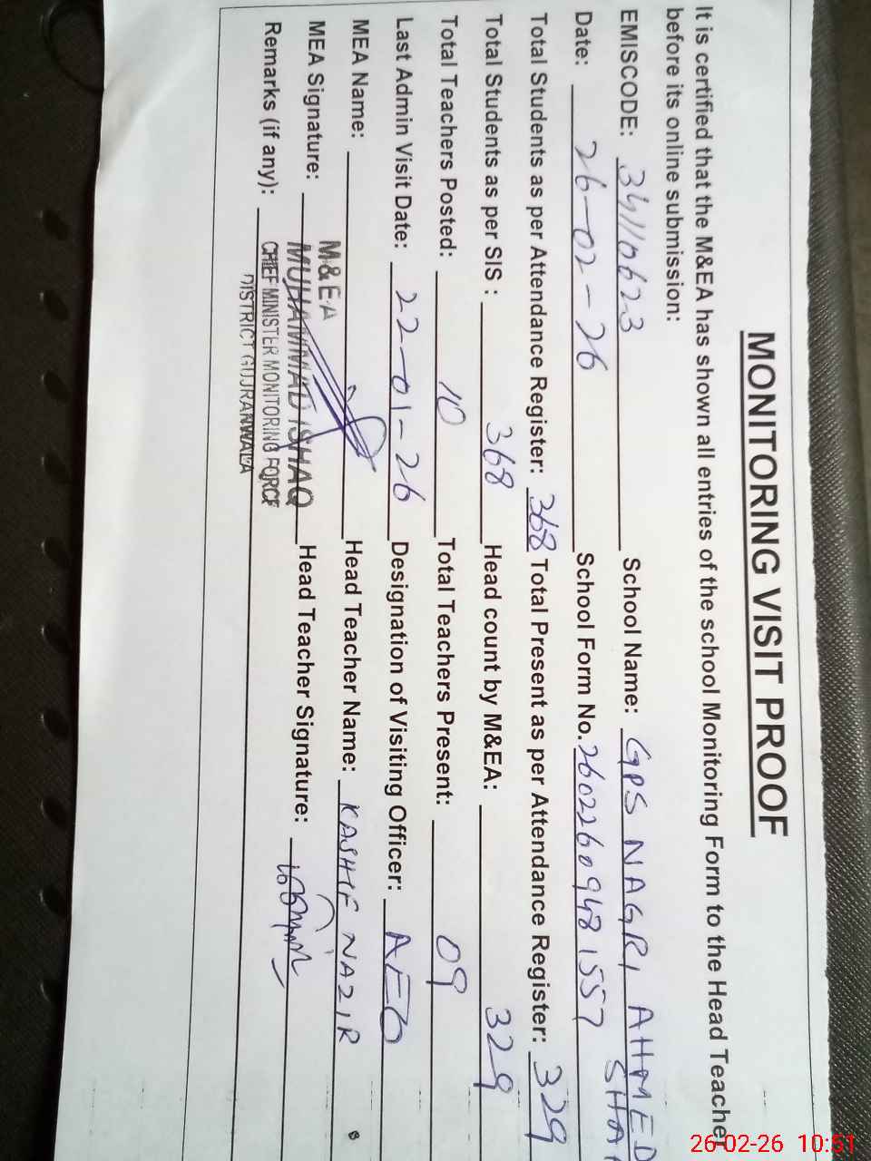 | EMIS Code: 34110623 | Name of School: GPS NAGRI AHMED SHAH | |||