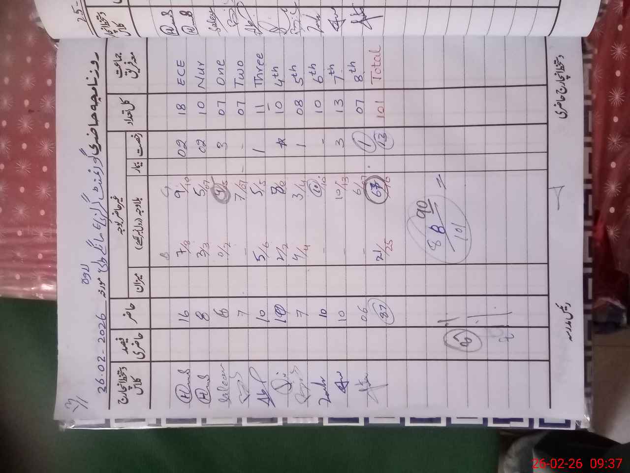| Total Students Present | 0 | 16 | 6 | 7 | 10 | 10 | 8 | 10 | 10 | 6 | 91 | |||||