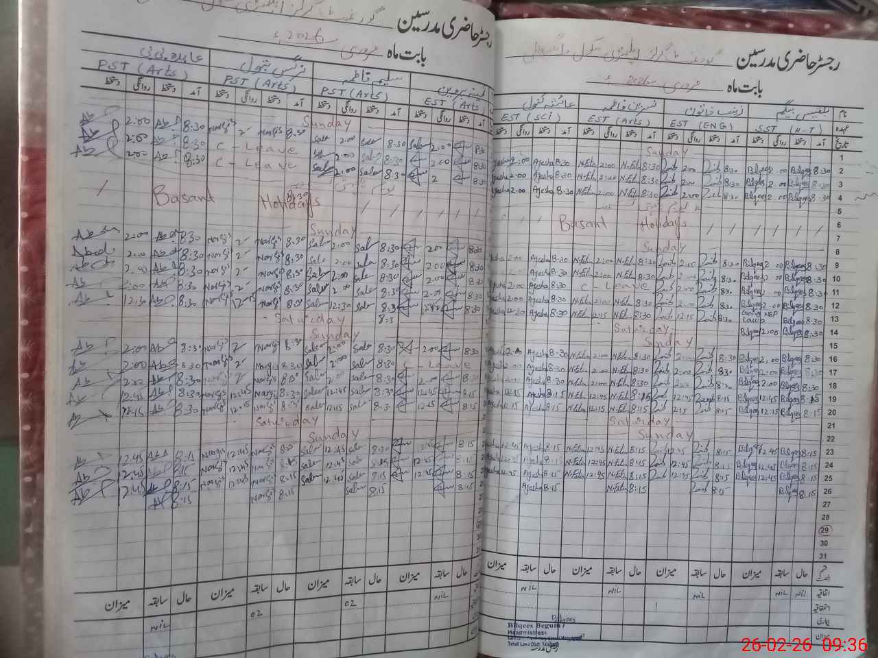 | Leave | Duty | Absent | Maternity | Medical | Ex- Pak |