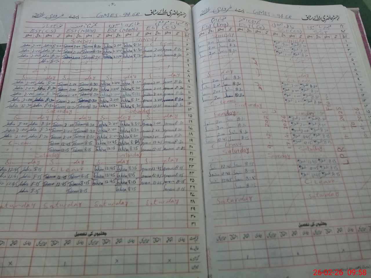 | 31**** | Su**** Kh**** | EST Urdu | Regular | 0 | 0 | 0 | 0 | 0 | 0 | 0 | 0 | 0 | Casual |