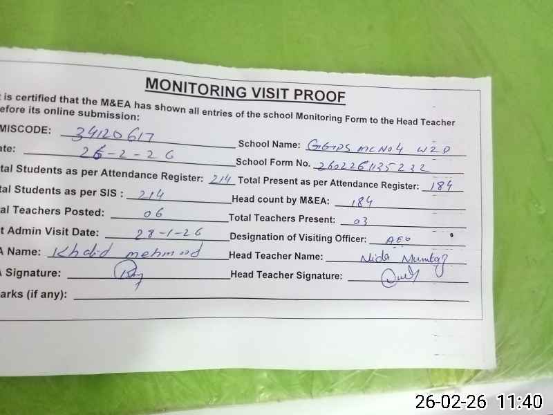 | EMIS Code: 34120617 | Name of School: GGPS MC NO.04 WAZIRABAD | |||
