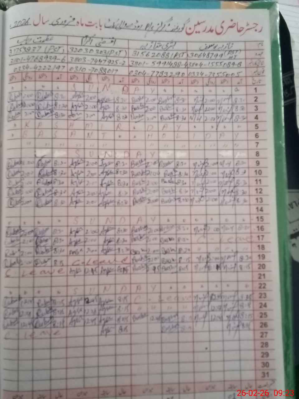 | 31**** | Az**** Ru**** | PST Science/Maths | Regular | 0 | 0 | 0 | 0 | 0 | 0 | 0 | 0 | 0 | Casual |