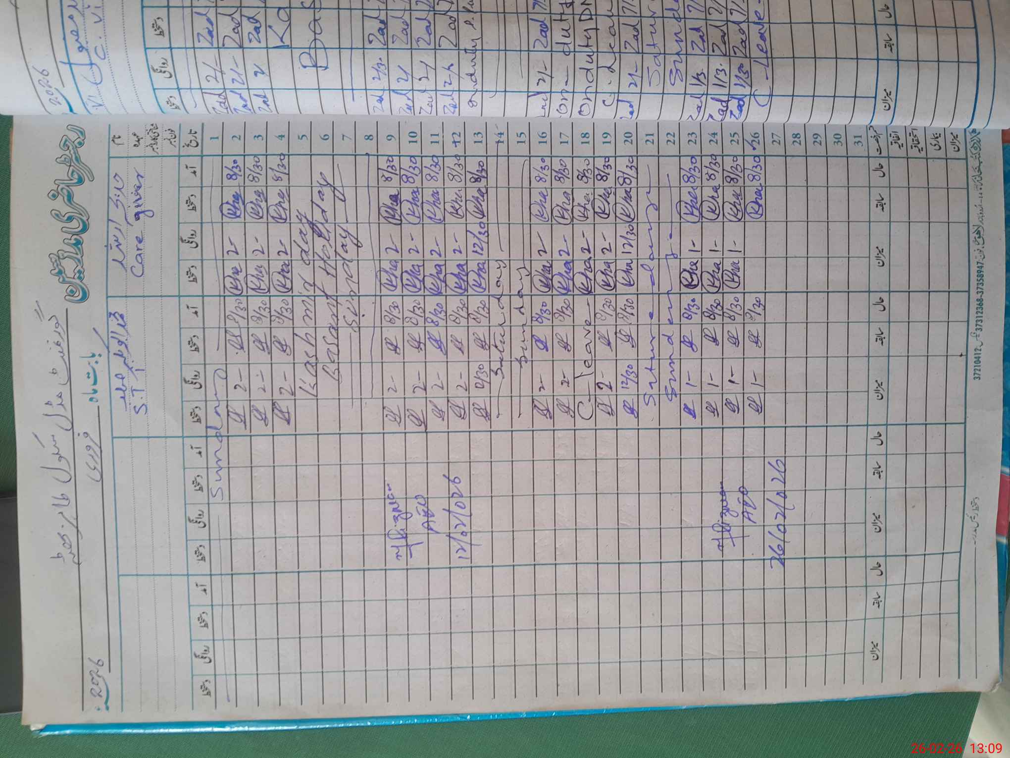 | Leave | Duty | Absent | Maternity | Medical | Ex- Pak |