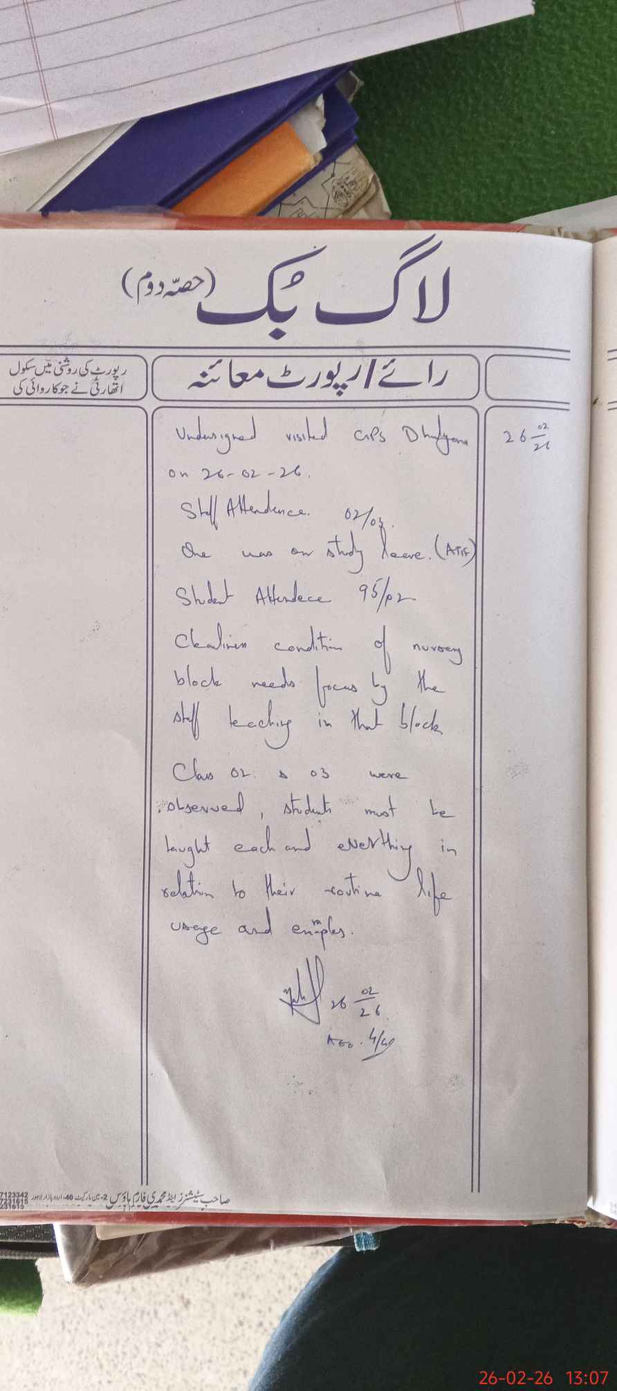 | Attendance Register | Head Teacher | MEA with School | Visit Proof |