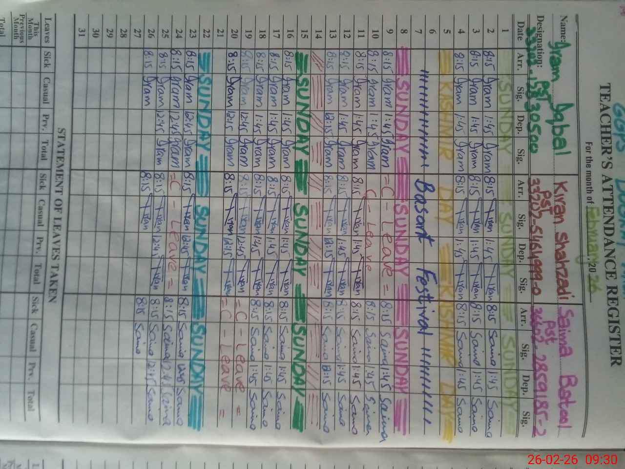 | Name: AS**** PE**** Designation: (School Headmaster's/Headmistress's) PST Phone/Cell Number: 03**** |