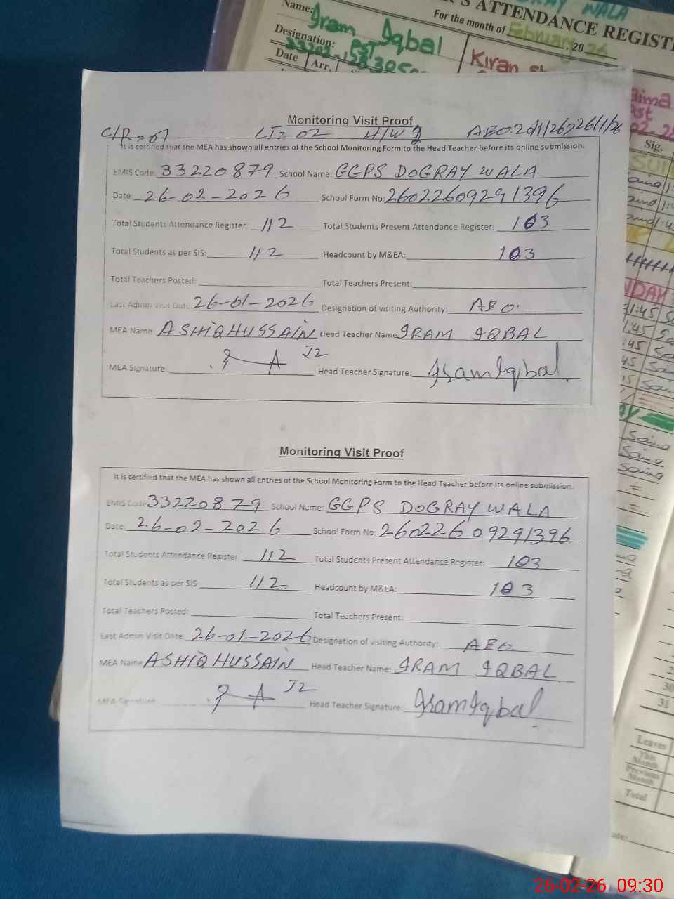 | EMIS Code: 33220879 | Name of School: GGPS DOGRAY WALA | |||