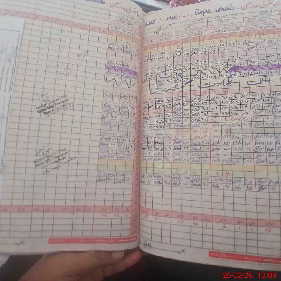| CNIC | Full Name | Designation | R/C | Absence During Last Calender Month |