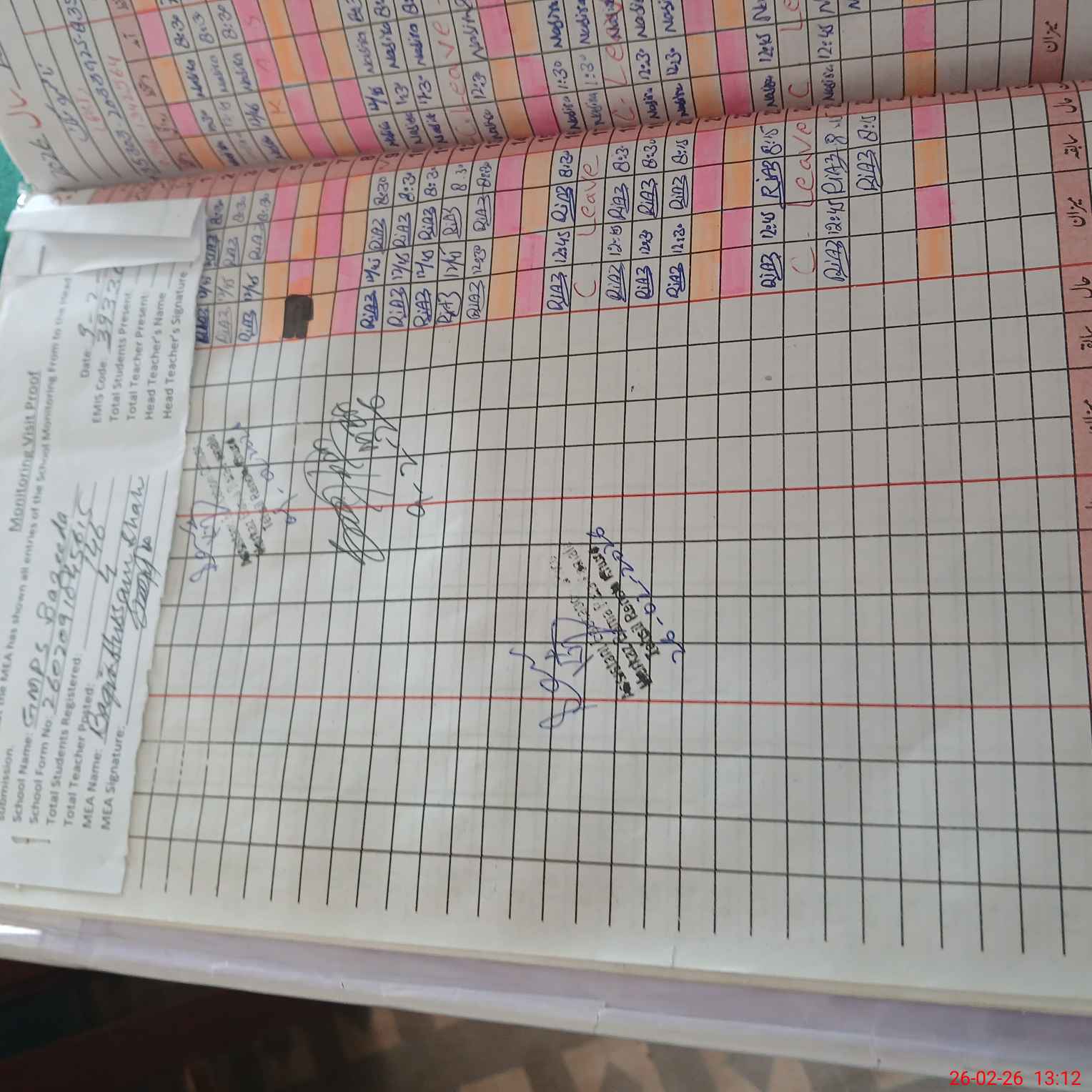 | Attendance Register | Head Teacher | MEA with School | Visit Proof |