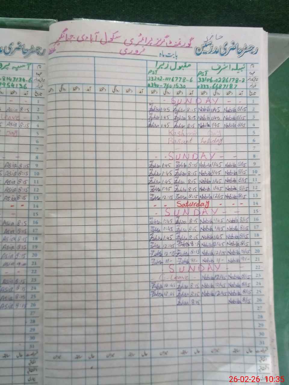 | Name: Ra**** aIn**** Designation: (School Headmaster's/Headmistress's) PST Phone/Cell Number: 03**** |