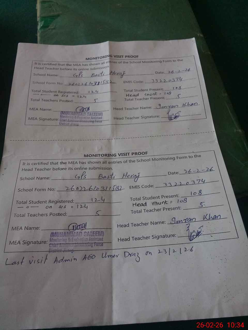 | EMIS Code: 33220374 | Name of School: GPS BASTI HERAJ | |||