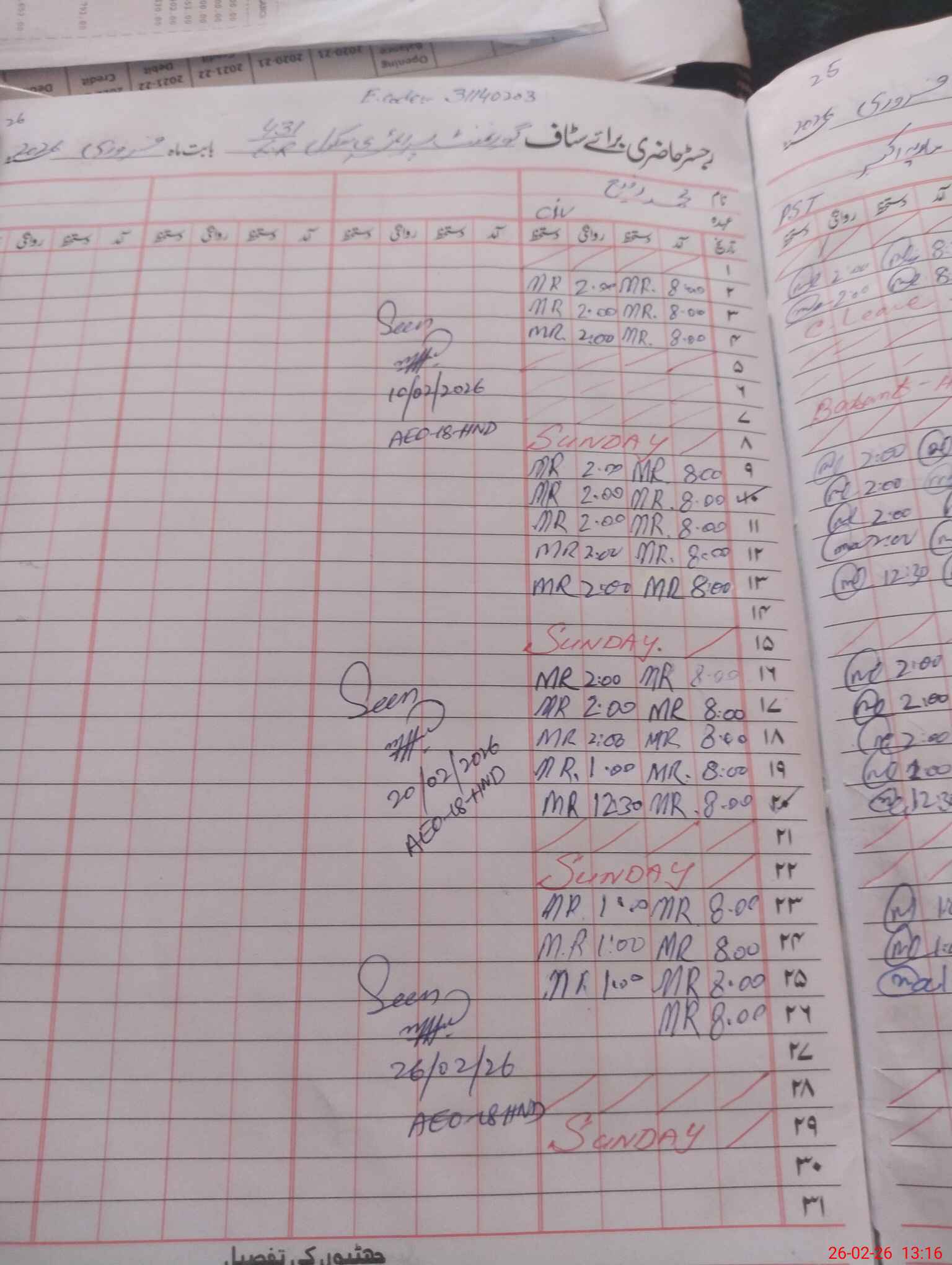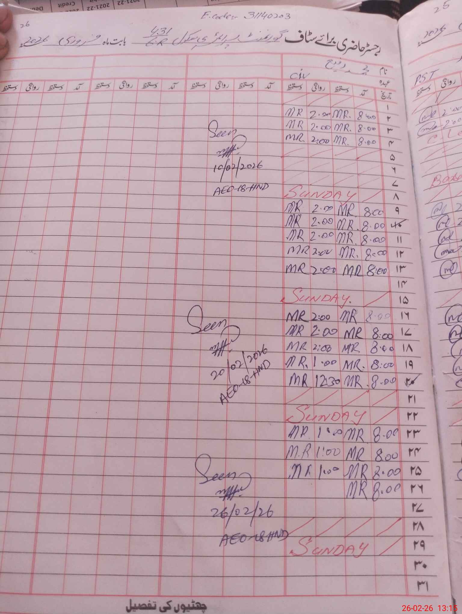 | CNIC | Full Name | Designation | R/C | Absence During Last Calender Month |