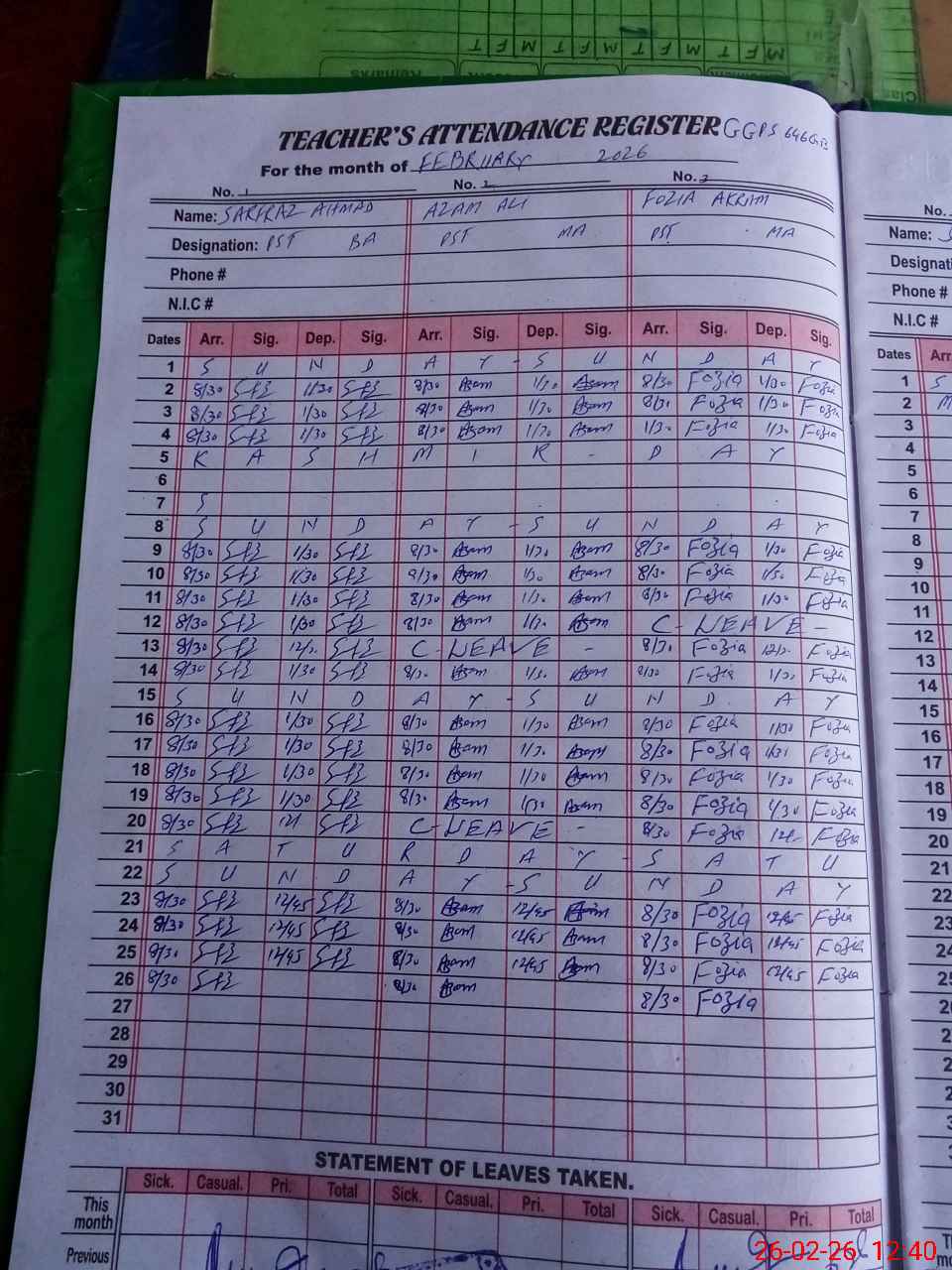 | Name: FO**** AK**** Designation: (School Headmaster's/Headmistress's) PST Phone/Cell Number: 03**** |