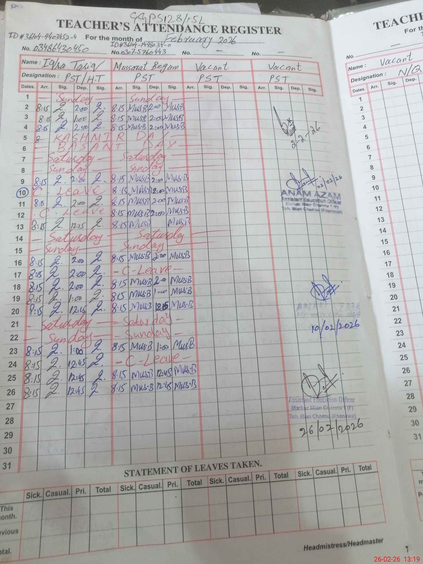 | Name: Iq**** Ta**** Designation: (School Headmaster's/Headmistress's) PST Phone/Cell Number: 03**** |