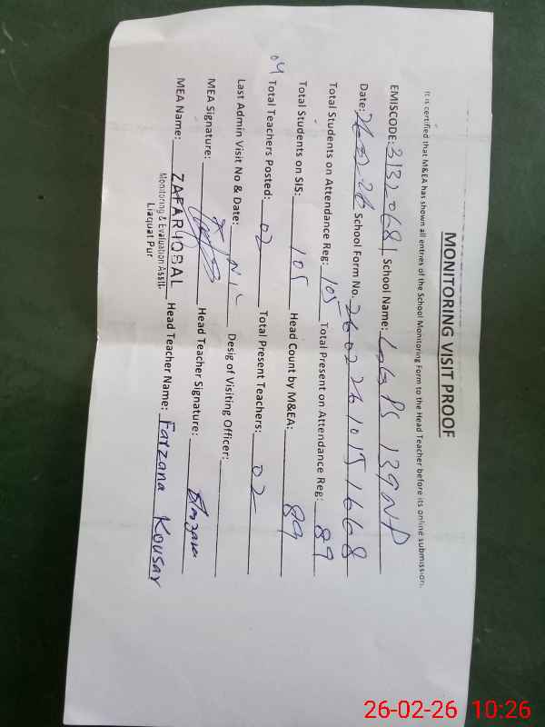| EMIS Code: 31320681 | Name of School: GGPS CHAK 139/NP | |||