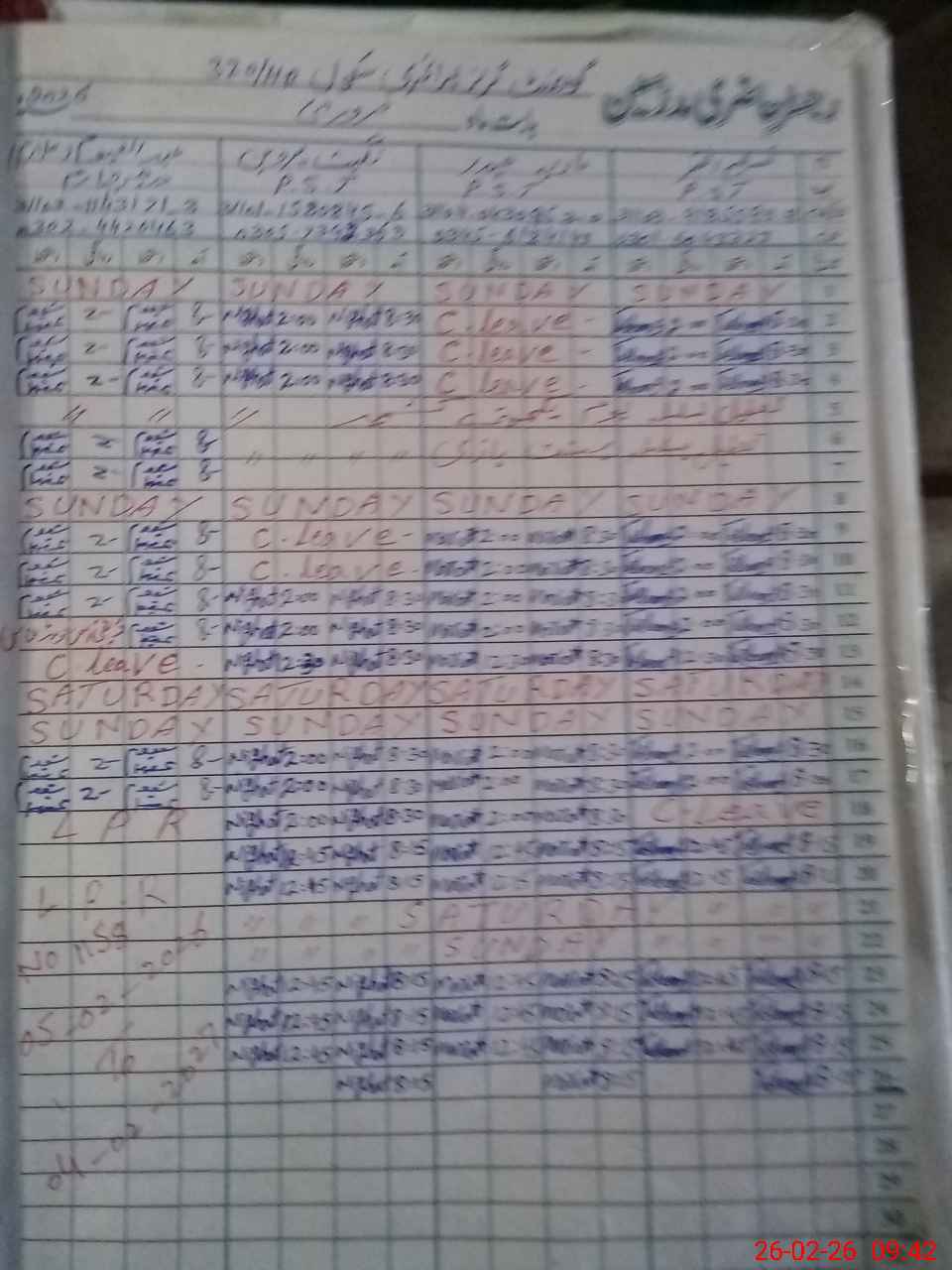 | CNIC | Full Name | Designation | R/C | Absence During Last Calender Month |