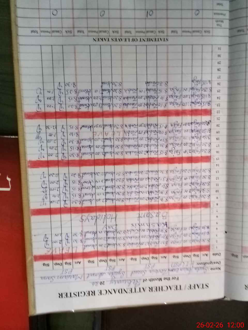 | Remarks (Use Separate Page if Required): Administrator visit of the Dy DEO in the school in January 2025 to January 2026 not available. Administrator visit of the AEO on 20th January 2026 and 29th January 2026. | |||||