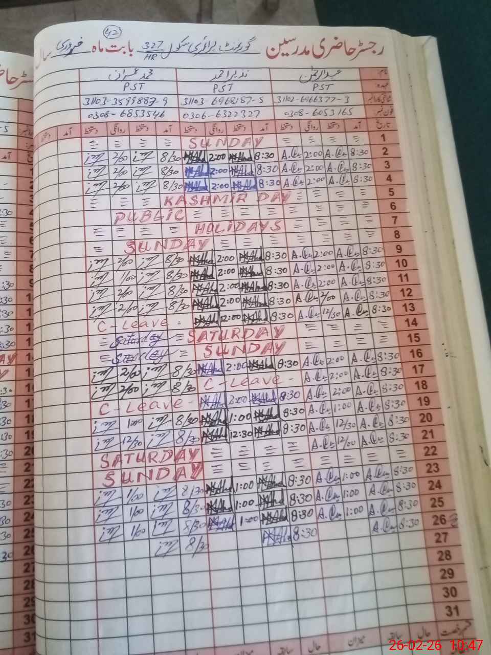| Name: Ab**** Re**** Designation: (School Headmaster's/Headmistress's) PST Phone/Cell Number: 03**** |