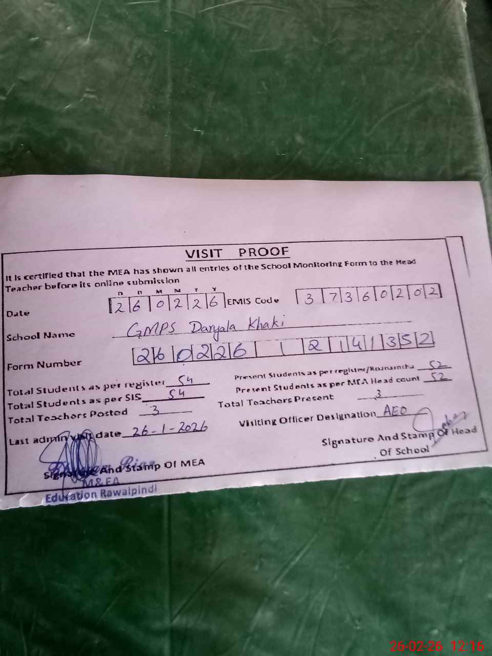 | EMIS Code: 37360202 | Name of School: GMPS DARYALA KHAKI | |||