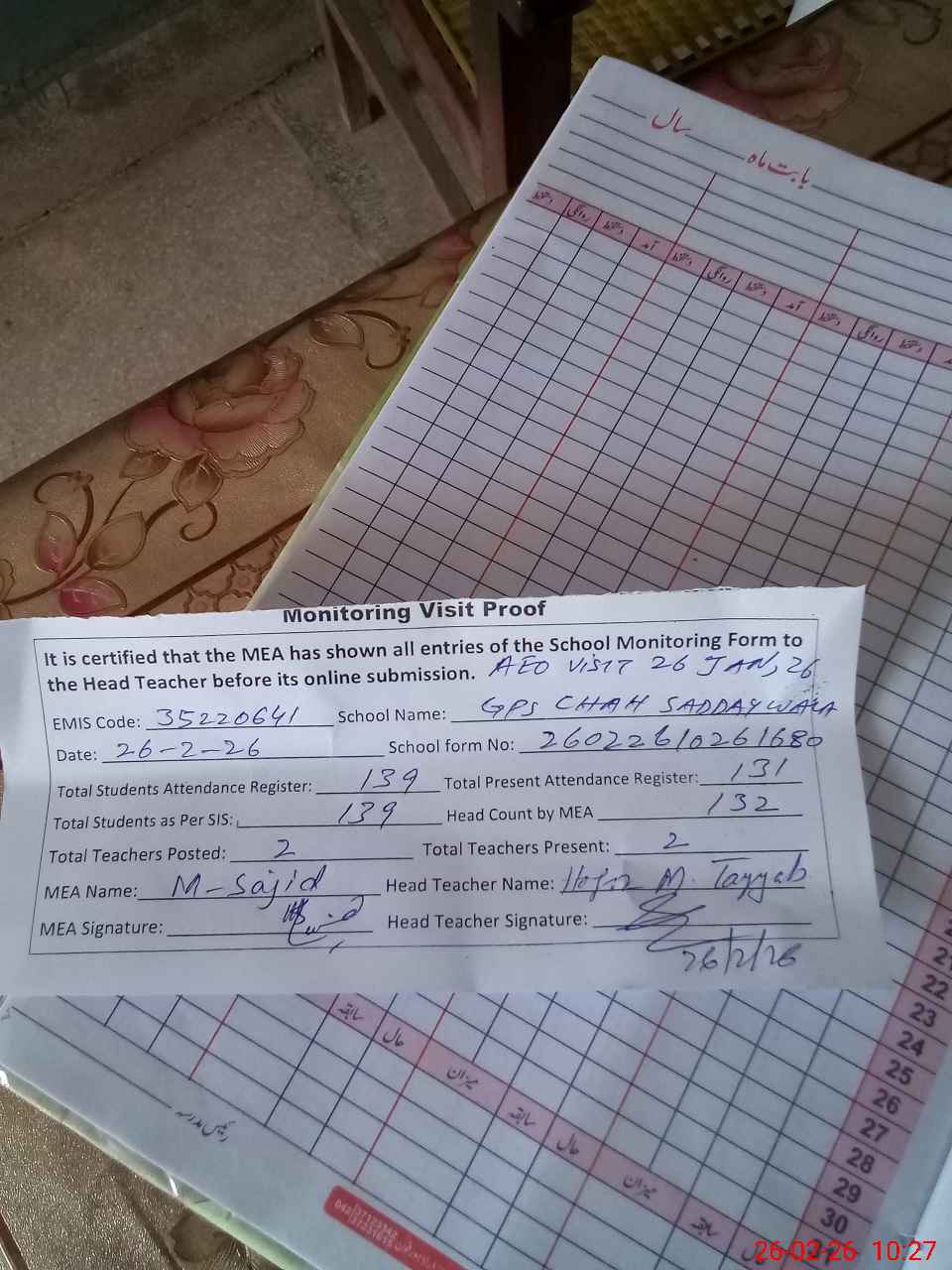 | EMIS Code: 35220641 | Name of School: GPS CHAH SADDAY WALA | |||