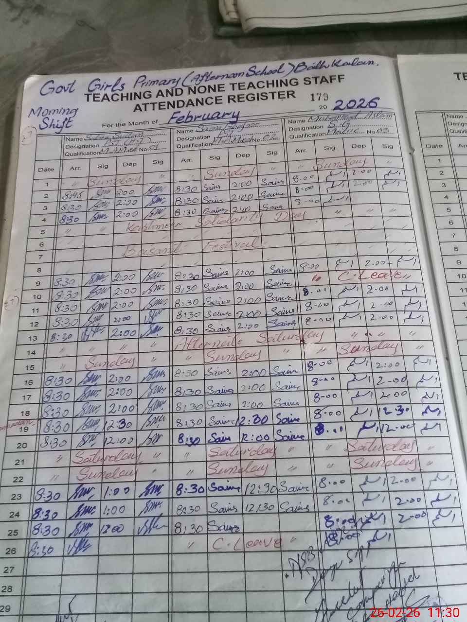 | 35**** | Sa**** Gh**** | PST Arts | Regular | 0 | 0 | 0 | 0 | 0 | 0 | 0 | 0 | 0 | Casual |