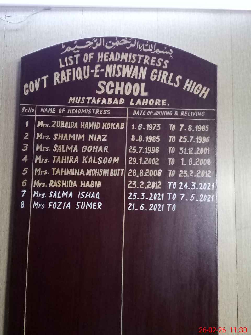 | Name: Fo**** Su**** Designation: (School Headmaster's/Headmistress's) Senior Head Mistress Phone/Cell Number: 03**** |